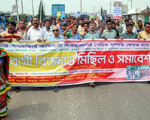 সাঁওতাল হত্যার বিচারসহ ৭ দফা দাবিতে বিক্ষোভ