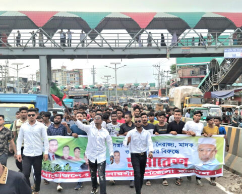 সন্ত্রাস ও চাঁদাবাজির বিরুদ্ধে সোনারগাঁয়ে ছাত্রদলের বিক্ষোভ