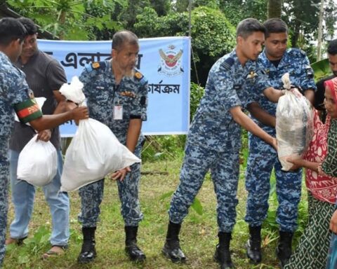 বন্যাকবলিত ফেনীর বিভিন্ন দুর্গম এলাকায় বন্যা দুর্গতদের মাঝে ত্রাণ বিতরণ কার্যক্রম অব্যাহত রেখেছে বাংলাদেশ বিমান বাহিনী। মঙ্গলবার (১০ সেপ্টেম্বর) এক সংবাদ বিজ্ঞপ্তিতে এ তথ্য জানিয়েছে আন্তঃবাহিনী জনসংযোগ পরিদপ্তরের (আইএসপিআর)। আইএসপিআর জানায়, বিমান বাহিনী কর্তৃক মঙ্গলবার ফেনীর ফুলগাজী উপজেলার বরাইয়া গ্রামে বন্যা দুর্গতদের